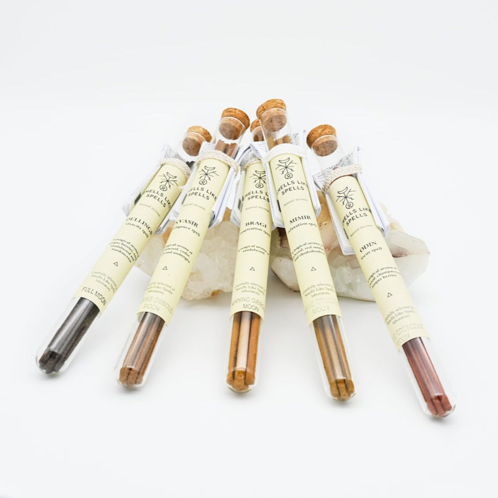 5er Set Smells Like Spells Räucherstäbchen im Reagenzglas: Bragi, Dellingr, Freya, Kvasir, Mimir, Odin.