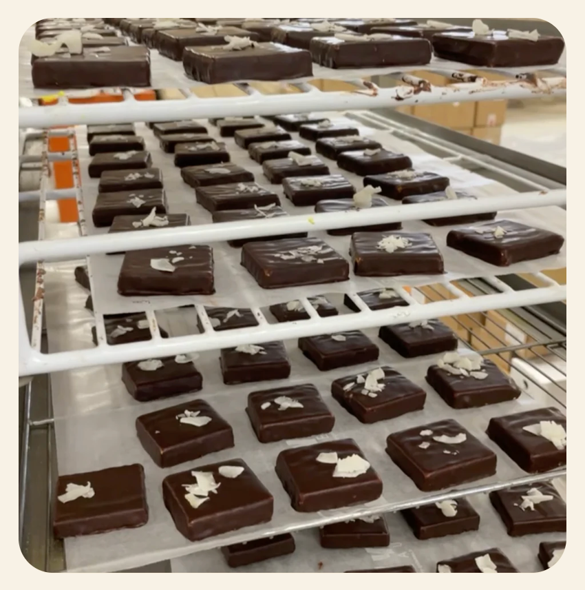 Zutaten: Dunkle Schokolade mit 75 % Kakaogehalt (Kakaobohnen*, Dattelpulver*), Kakaobutter*, Mandelpüree* (blanchiert), Natives Kokosöl*, geröstete Kokosnuss (4,7 %)*, Kokosraspeln*, Datteln*, Gewürzmischung (Kurkuma*, Kassia-Zimt*, Grüner Kardamom*, Ingwer*, Schwarzer Pfeffer*, Nelken*, Macis*, Vanille*) (0,7 %)*